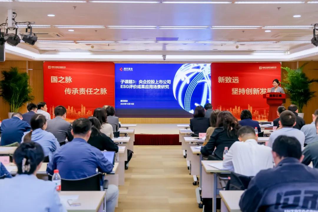 2025年10月16日下午,為促進央企ESG研究成果落地應用,充分發揮央企ESG評價和投資應用對央企可持續發展的引導作用,由國務院國資委研究中心指導、國新證券股份有限公司承辦的《央企控股上市公司ESG評價體系研究》課題發布會在京隆重召開。嘉實基金作為本次課題發布會的支持單位和子課題三的牽頭單位,負責央企控股上市公司ESG評價結果的資本市場應用研究,并在會上分享了子課題三的研究成果。
