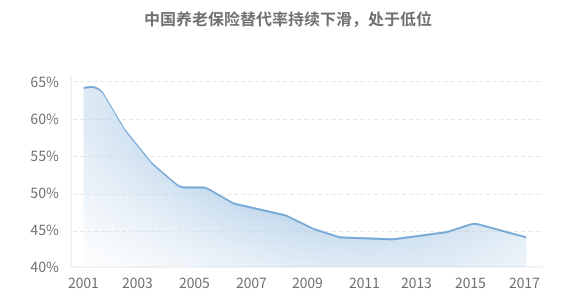 世界銀行建議如果退休后生活水平與退休前相當,養老金的替代率需要達到70%以上,目前我國基本養老保險的替代率約為45%,難以滿足高質量生活需求。
